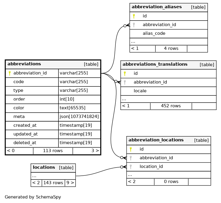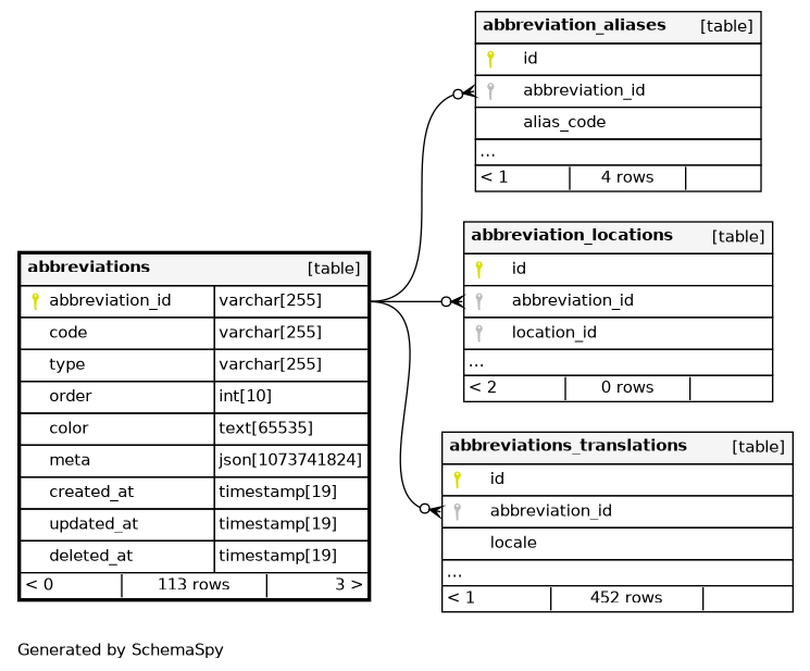 | PRIMARY | Primary key | Asc | abbreviation_id |