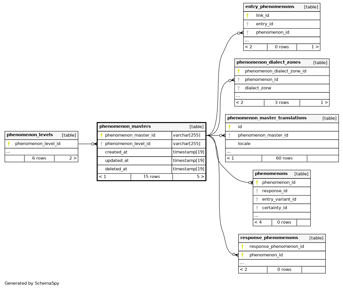 | PRIMARY | Primary key | Asc | phenomenon_master_id |