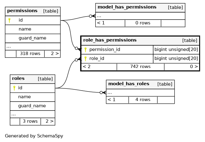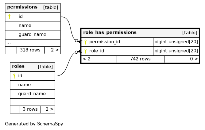 | PRIMARY | Primary key | Asc/Asc | permission_id + role_id |
