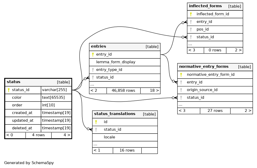 | PRIMARY | Primary key | Asc | status_id |